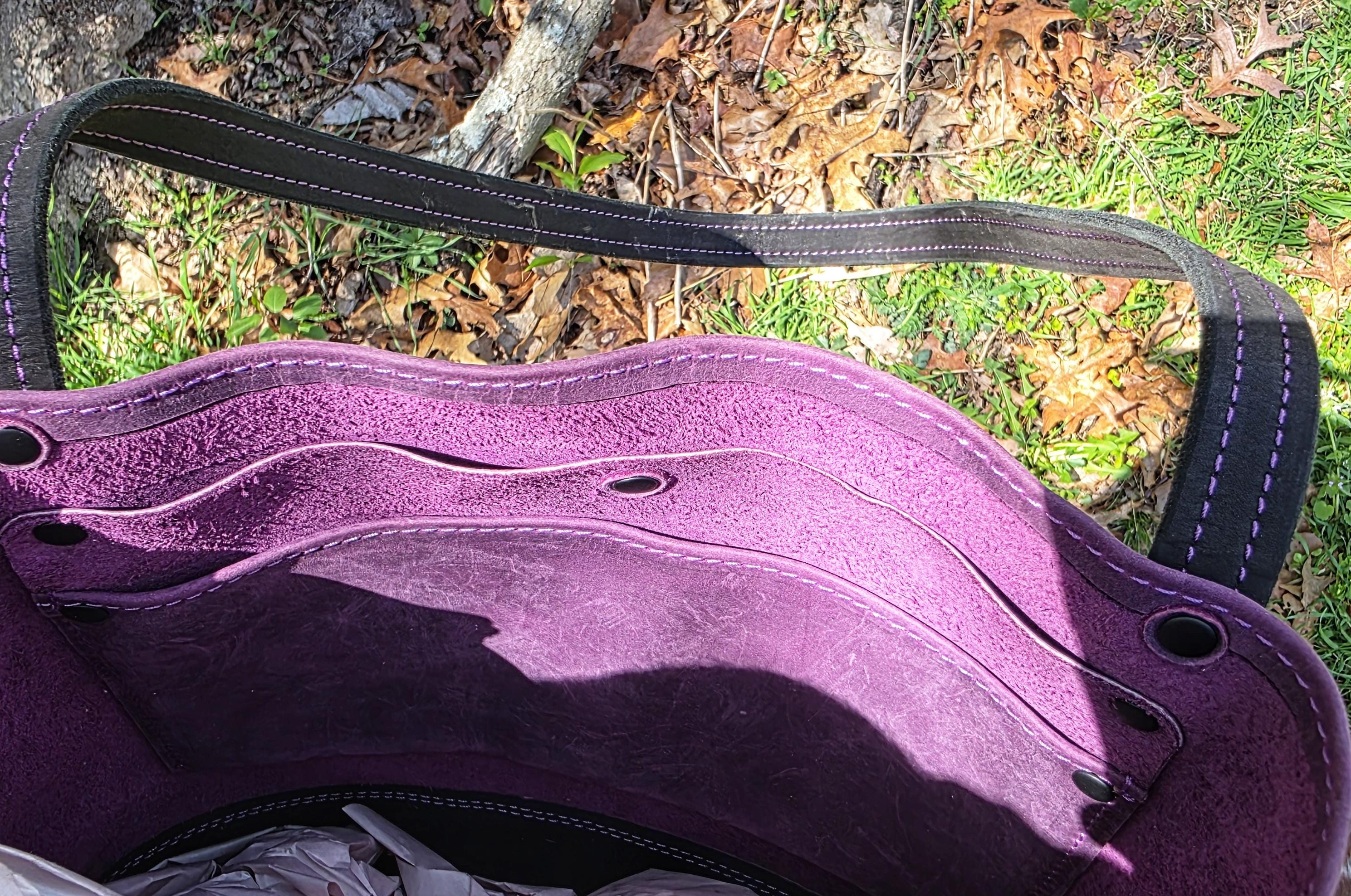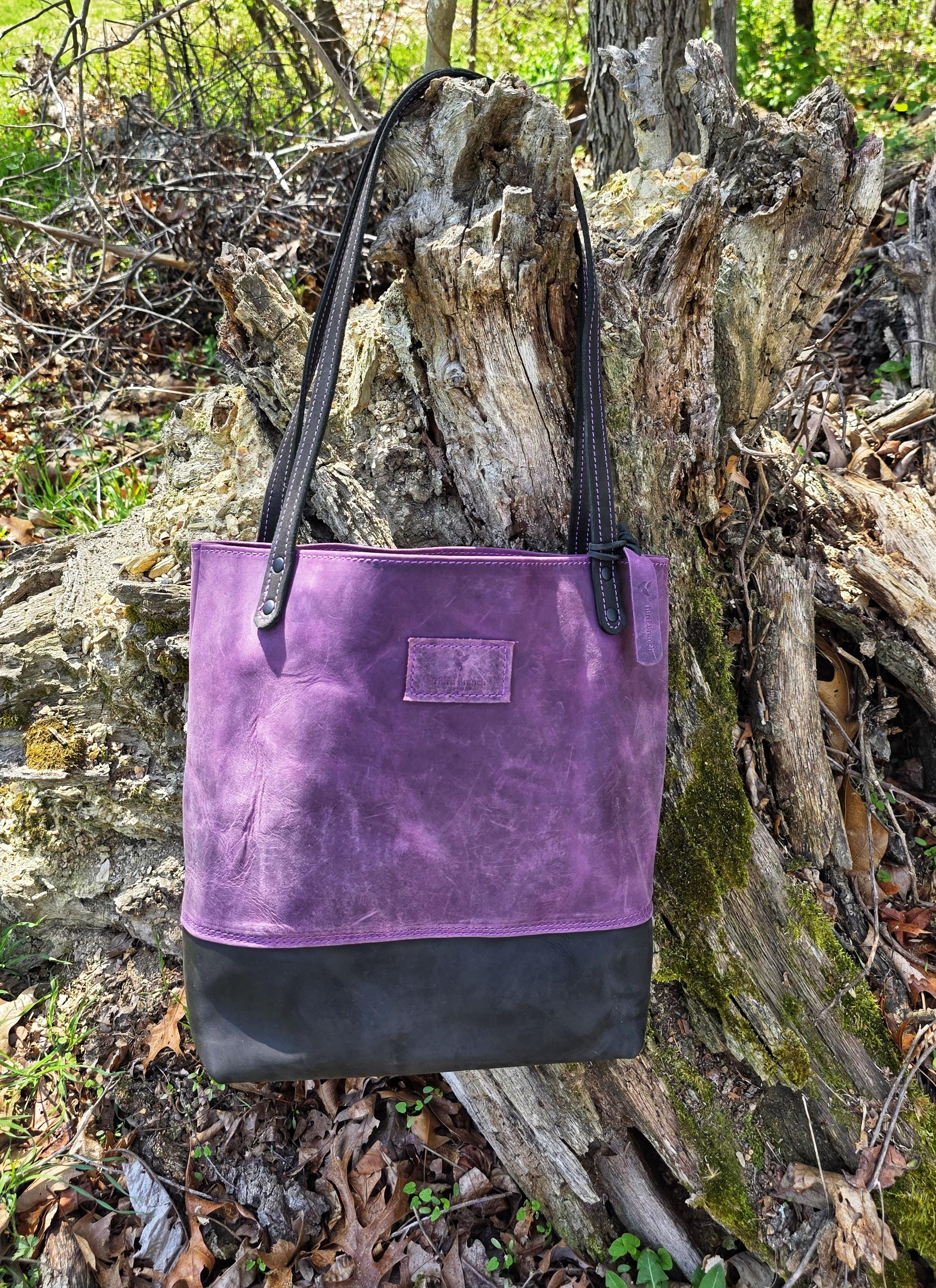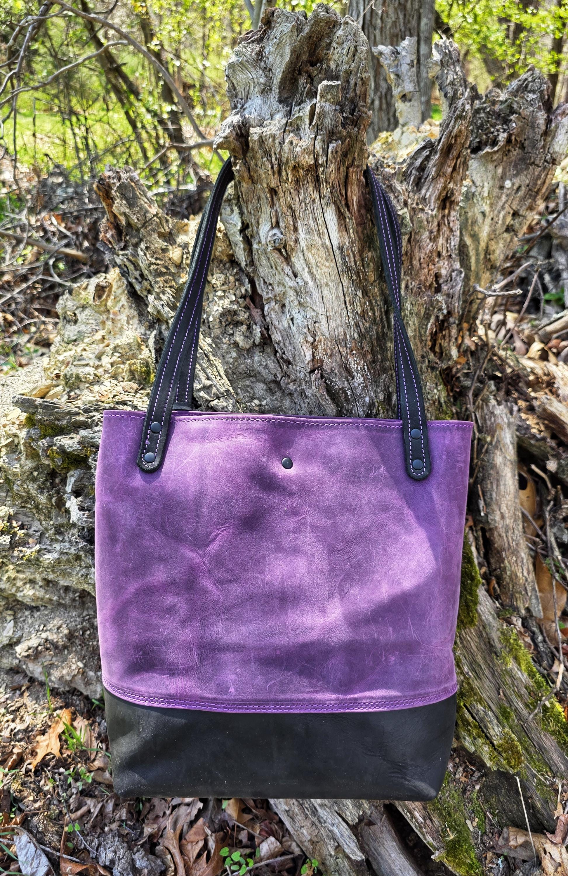 This tote bag is approximately 13" tall x 12" wide and large opening at the top. It also has a 11" strap drop. This bag sports rolled edges, an inside pocket, an attached ring for your keys on the inside, and also a large pocket on the front. This particular tote bag is dressed in full grain oil tan pull up leather.