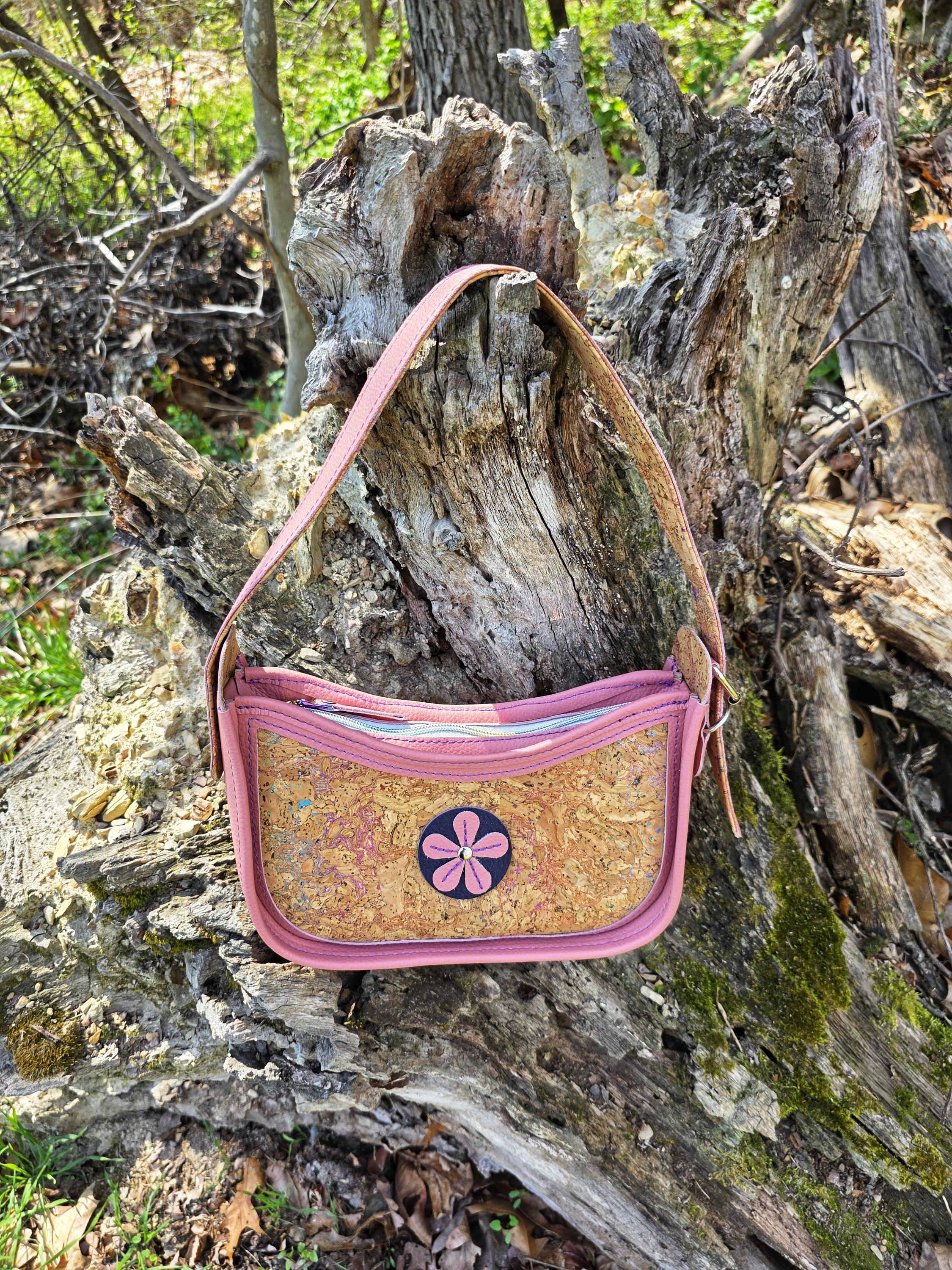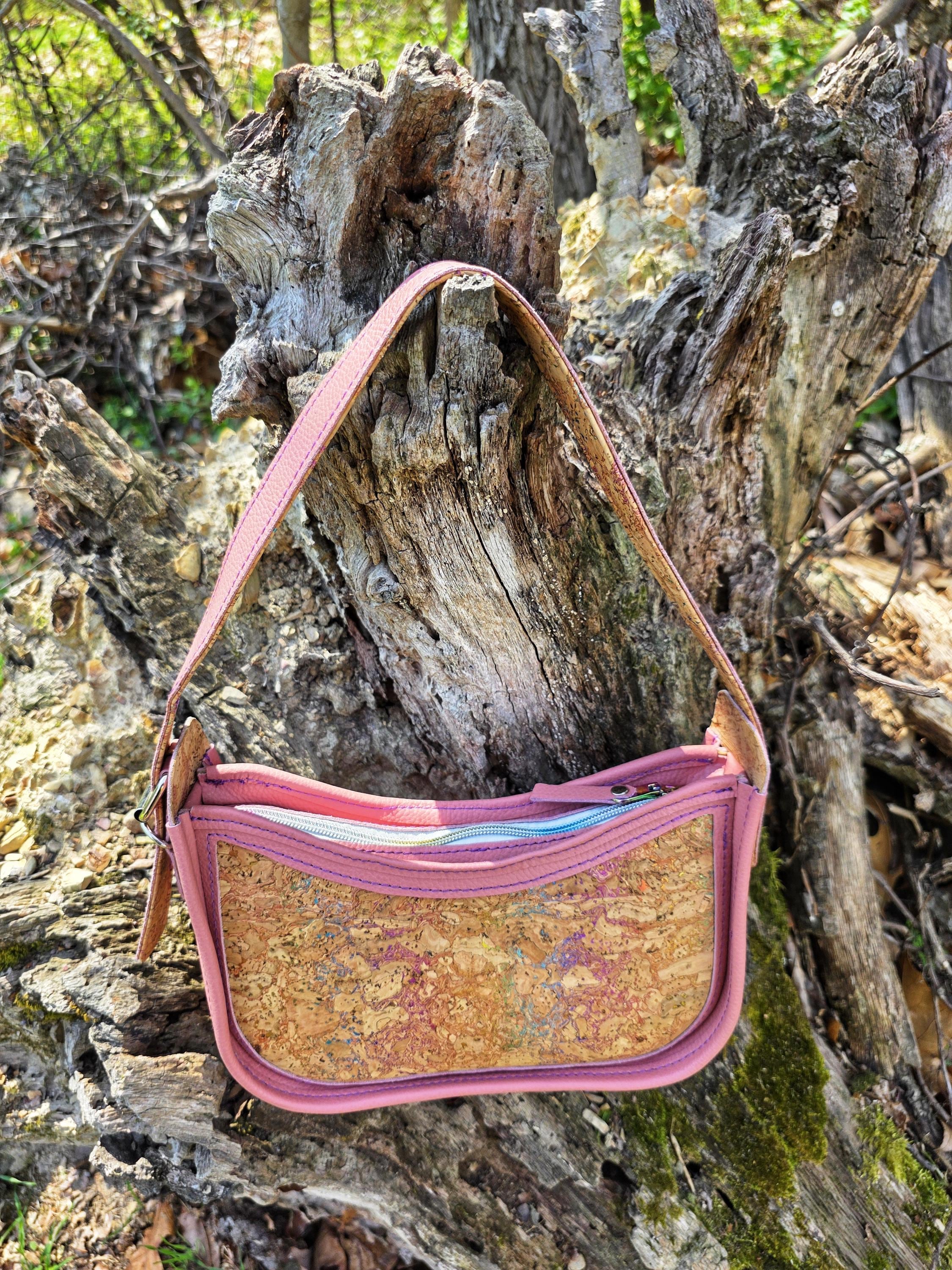 The exterior of this baguette showcases the perfect marriage of textures. The soft and supple pink leather exudes sophistication, while the rainbow-veined cork adds a playful and whimsical touch. This harmonious combination of materials creates a baguette that stands out from the crowd, making it a perfect choice for both fancy outings and everyday carry.