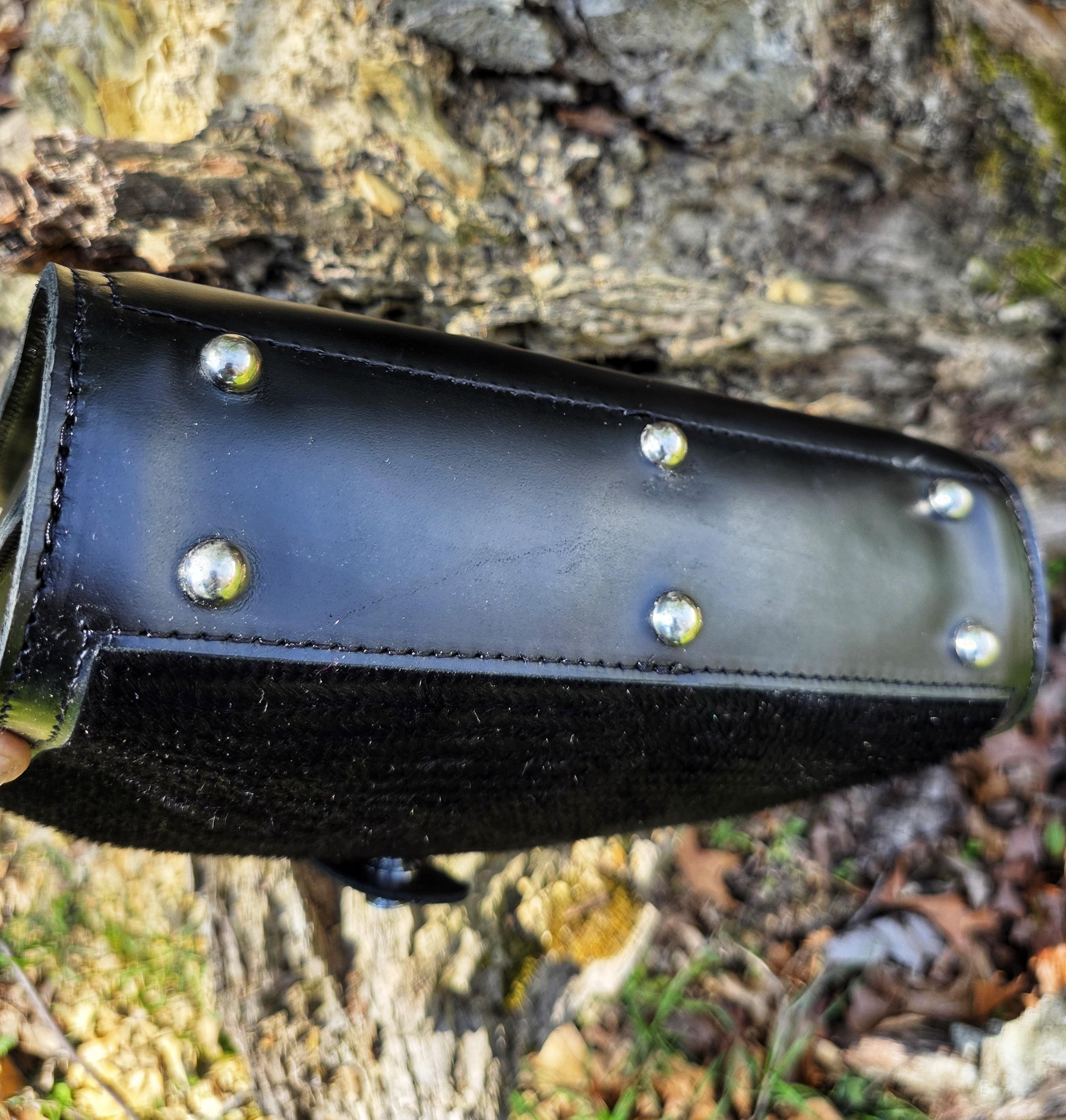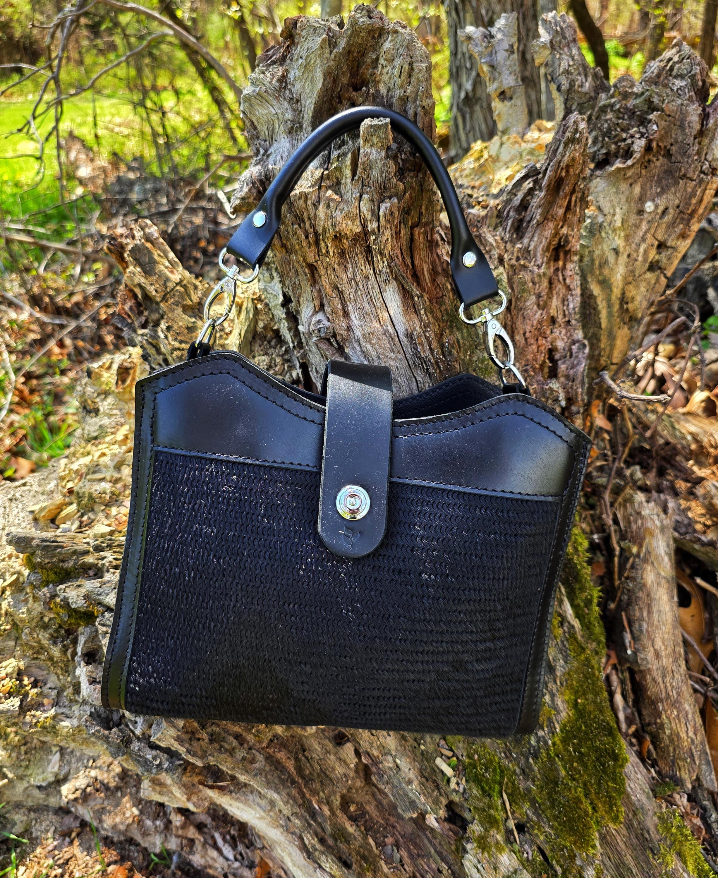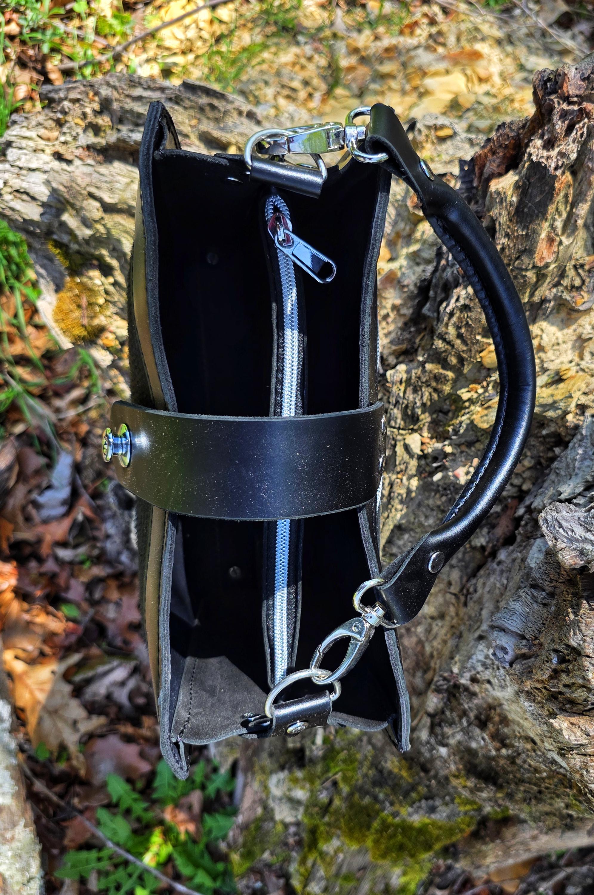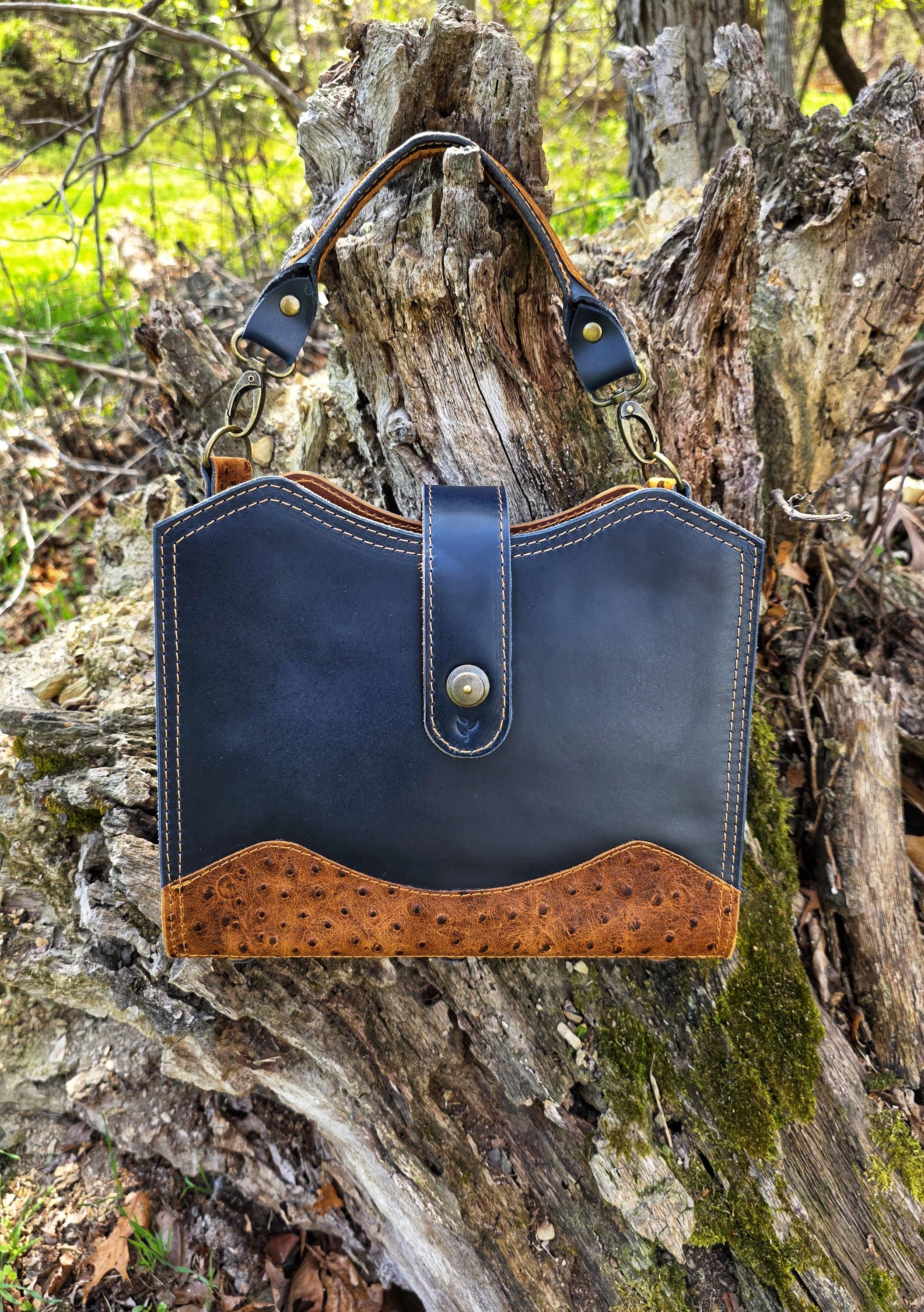 These classic leather handbags are approximately 9" tall x 10.5" wide x 3.5" deep. It has a leather handle, inside/outside zipper pockets, and a place to clip your keys.