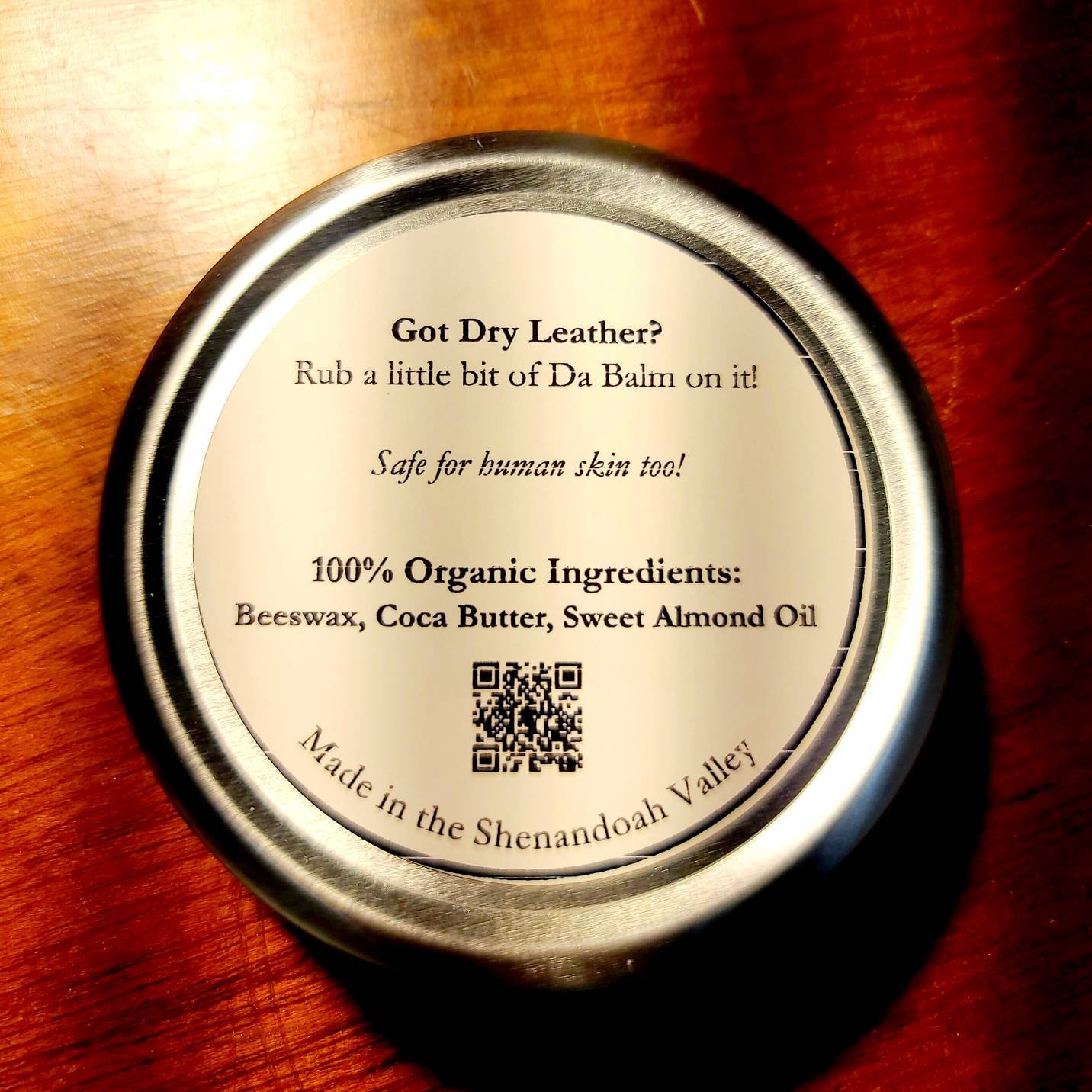 If your leather products are dry and need a little TLC, then rub a little bit of Da Balm on it! Great for your skin as well.